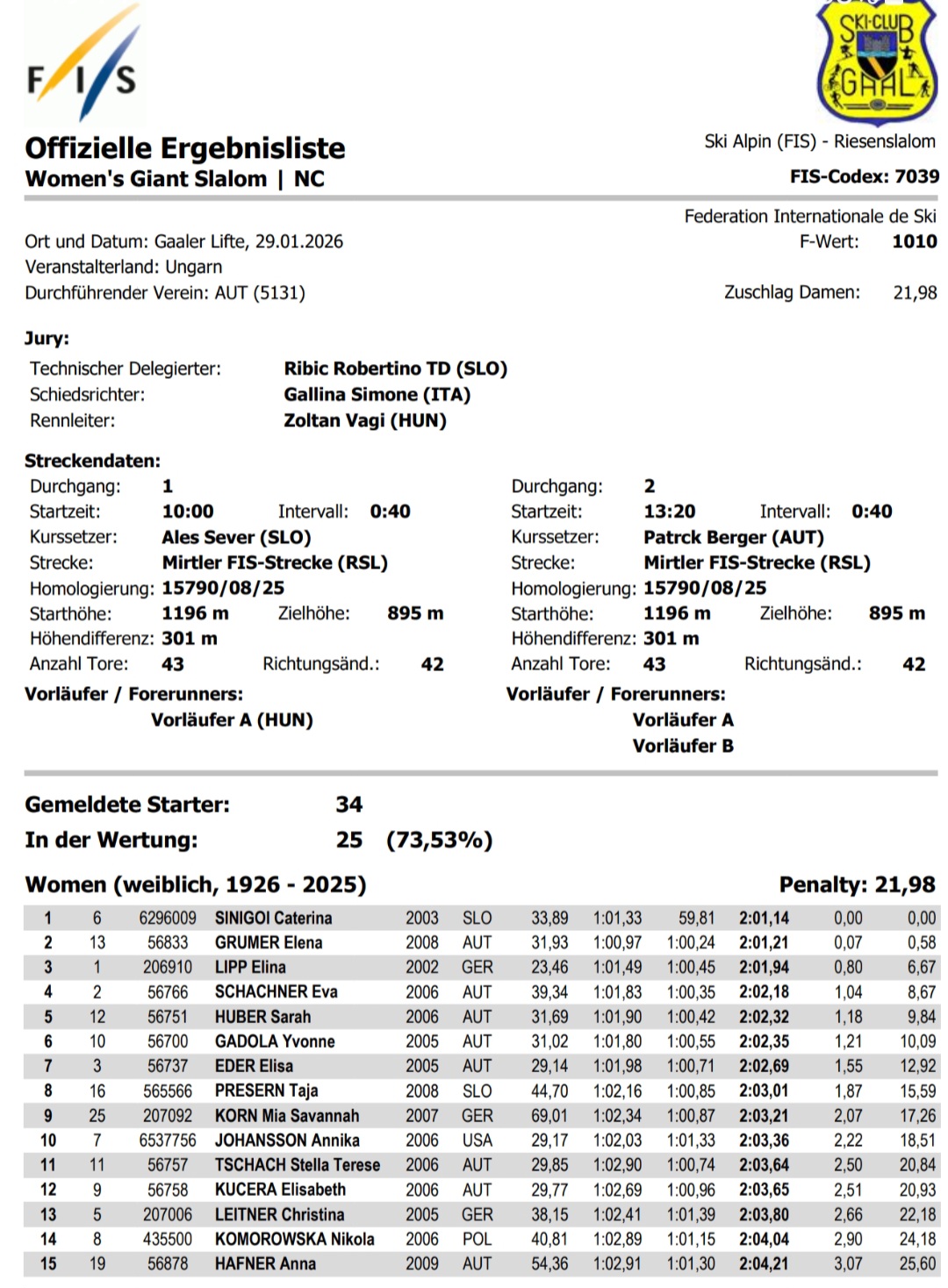 nach dem Eva bei einem Rennen letzte Woche als Vorläuferin die 2. Beste Laufzeit aller Rennläufer hatte,